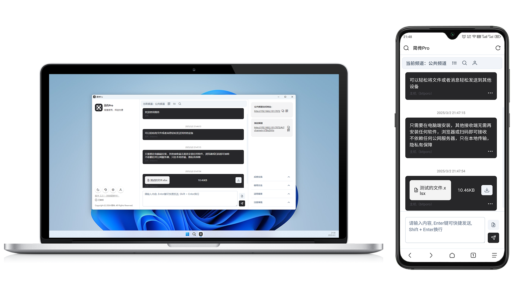 软件不联网,所有传输数据都保存在本地,所以不会上传任何数据到服务器,请放心使用,同时也提供创建不同频道的功能,轻松隔离数据,进一步在局域网中提高隐私性